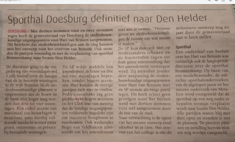 Hierbij is opvallend dat Robbertsen schrijft: ...doe niet alsof de sporthal niet bestaat... De vraag ligt voor de hand: wat doet hun wethouder Hillenaar van het DCA dan in het college ? Zit hij te slapen?