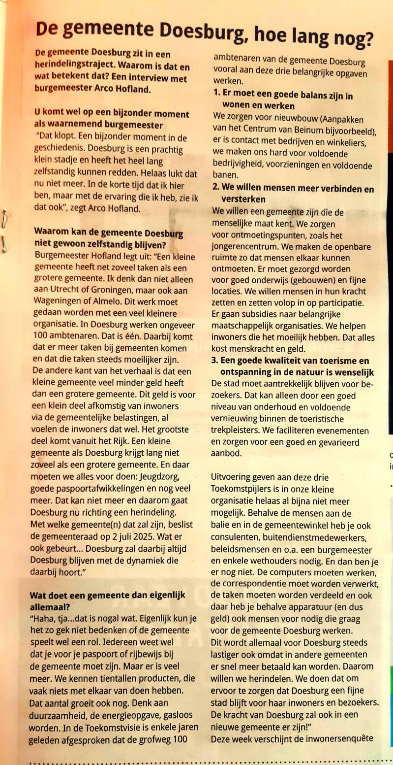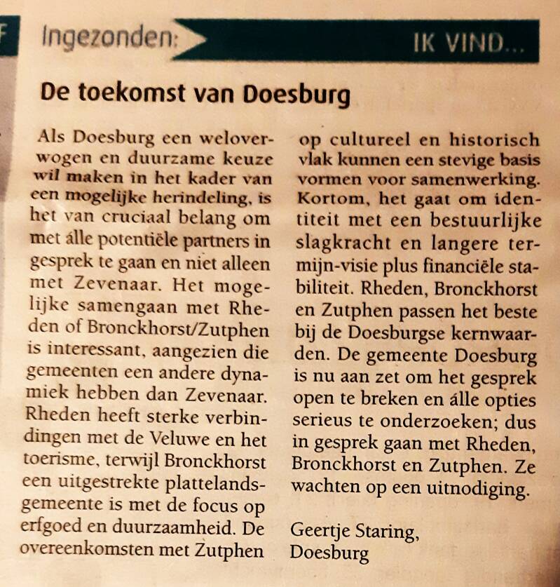 Kan men wel een weloverwogen en duurzame keuze maken ? Het is een goede vraag. Eerst maar hopen dat anderen Doesburg wel willen opnemen.